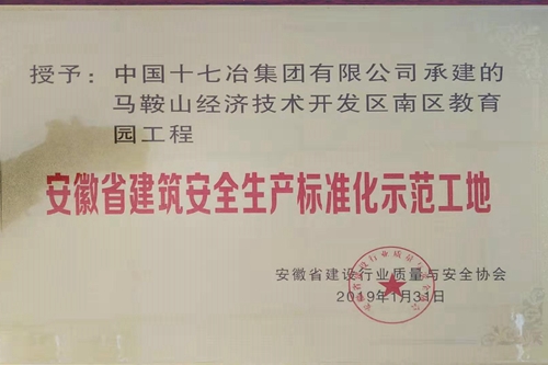 312日,十七冶房屋工程技术分公司马鞍山南区教育园项目部收到安徽省建设行业质量与安全协会发来的2018年度安徽省建筑安全生产标准化示范工程”的荣誉奖牌。