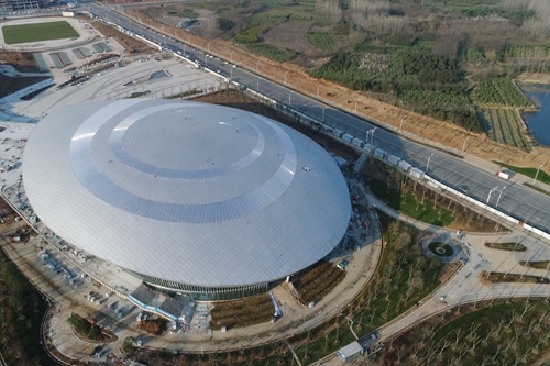 滁州高教科创城文体活动中心主场馆金属屋面主体工程完工