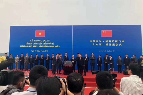 开通仪式上,鹿心社书记在讲话中指出,中越北仑河二桥口岸的通关,对于东兴跨境经济合作区开发建设具有里程碑的意义。投入使用后,主要用于货物运输车辆通行,将与在用的北仑河一桥实行客货分流,有效缓解中越北仑河一桥口岸通关压力,提升广西对外开放合作水平,并形成崭新的广西与东盟互联互通国际大通道,进一步凸显东兴跨境经济合作区在一带一路中的重要节点作用。