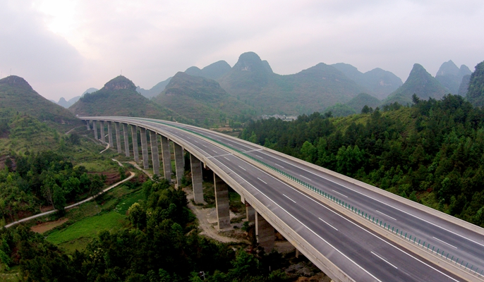 广西百色至靖西高速公路项目于2010年11月开工建设,2014年12月建成通车。广西百靖高速公路工程起于田阳县那坡镇那音村接南百高速,止于靖西县新靖镇亮表村接广西高速公路网规划中的靖西至龙邦公路,全长98公里,主线采用双向四车道高速公路标准修建,设计行车速度100公里/小时,路基宽度为26米。中国十七冶集团承建其路基5标段和路面1标段。路基5标项目工程主要包括桥梁工程5座全长1264米,隧道工程1座全长412米,路基土石方工程挖方88.26万立方米、填方73.14万立方米,全长3650米。路面1标施工内容主要包括主线25.615公里沥青路面、坡洪连接线12.697公里混凝土路面及其部分附属工程施工。该工程还积极推广应用了“建筑业10项新技术”中的7大项、11个子项,获得“中冶建筑新技术应用示范工程”。