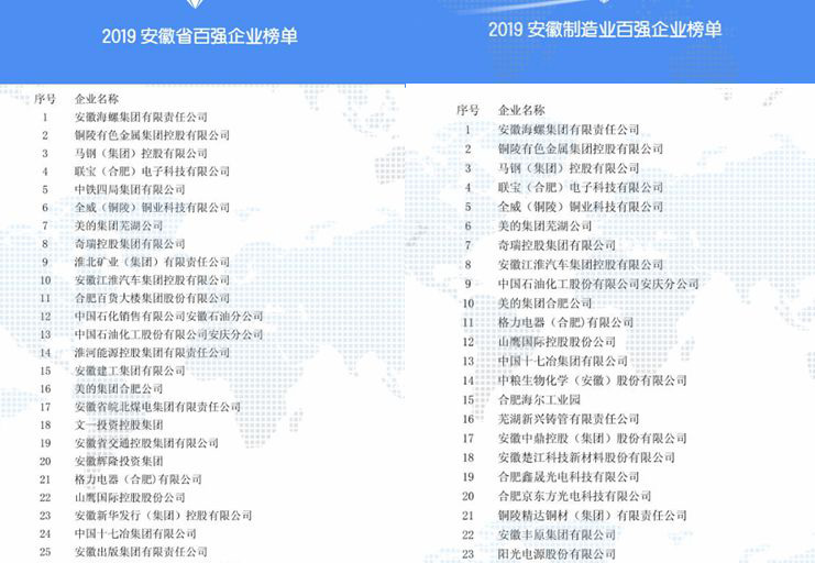 1116日上午,安徽省企业联合会、省企业家联合会在合肥发布了2019安徽省综合100强企业、制造业100强企业和服务业100强企业名单。中国十七冶集团名列安徽企业综合100强第24位,较去年前进一位,并跻身安徽制造业100强第13位。
