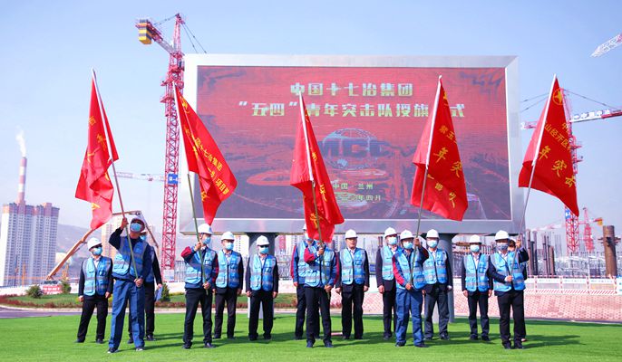 在授旗仪式现场,中国十七冶集团纪委书记、副总经理蔡进向青年突击队致辞,激励全体青年员工继续传承“五四”精神和十七冶老一辈奋斗者的优良传统,在新时代立新功。公司成立了16支青年突击队,兰州奥体、西安管廊、宝钢德盛、马鞍山科创园、紫玉兰亭项目青年突击队在现场从公司副总经济师、西北公司党委副书记孙才文手中郑重接过队旗。与此同时,城建分公司、江苏分公司、科技公司、十七冶医院在分会场举行了授旗仪式。青年突击队英姿飒爽,鲜艳的队旗在“中冶蓝”映衬下迎风飘扬。“硬核担当,不负韶华”,铿锵有力的誓词让人热血澎湃。