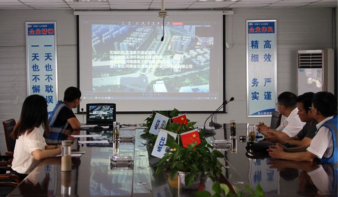 在云端展示环节中,项目总工何承辉通过视频会议平台屏幕,对防控疫情、全面复工复产以及开展“大干一百天”劳动竞赛活动以来的施工大干举措和成效进行了详细介绍:在疫情防控的特殊时期,项目部实行分批次、分时间的返岗复工制度,制定专车接送方案,先后组织12台车辆前往火车站、汽车站、孟津周边村镇等地接回了近200名工人,联系当地医院为新到岗的人员进行新型冠状病毒核酸筛查,大大缩短了新到岗人员的隔离观察时间。项目复工后,积极开展大干一百天劳动竞赛,对任务目标做详细安排与分解,制定进度、质量、安全专项竞赛方案,层层签订责任状,同时采取分散错峰作业制度,分工区、分班组锁定作业区域及人员数量,助推项目掀起施工大干高潮,在短短半个月时间里,完成了绿化清表188650平方米,挖填方超过12万立方米,弱电管道安装7600米,电管沟砌筑580米,路缘石安装4300米,水泥稳定碎石铺设22000吨,人行道回填5800米,标牌基础开挖268个,标牌制作320个等工程量。
