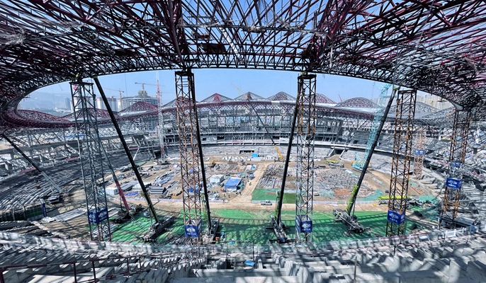 4月27日,中国十七冶集团西北公司承建的兰州奥体中心项目体育场工程迎来了一个关键性重大节点——2万吨钢结构罩棚系统最后区域的卸载。下午1时整,卸载总指挥向兰州市委常委、常务副市长、兰奥现场指挥部指挥长吕林邦报告了卸载准备情况。吕林邦指挥长一声令下后,卸载工作有序推进并于下午5时圆满结束。