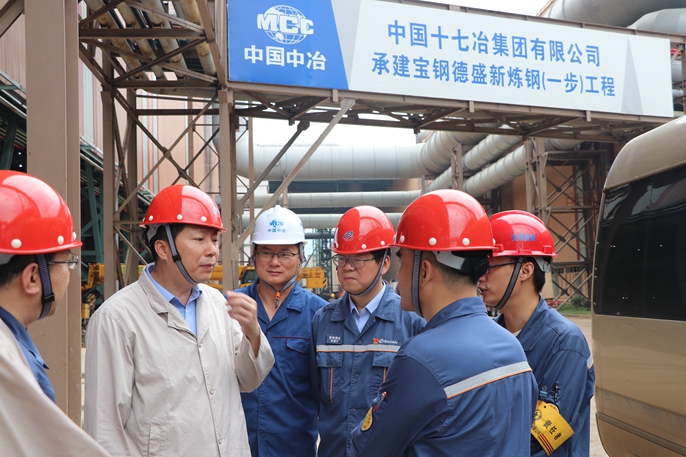 6月23日,太钢集团总经理、党委副书记魏成文到中国十七冶集团冶金分公司承建的宝钢德盛新炼钢(一步)工程调研。中国十七冶集团副总经理、冶金分公司经理周金龙参加调研。