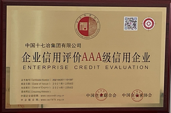 近日,从中国企业联合会(企业家)协会获悉,中国十七冶集团有限公司获评2021年AAA等级信用企业。