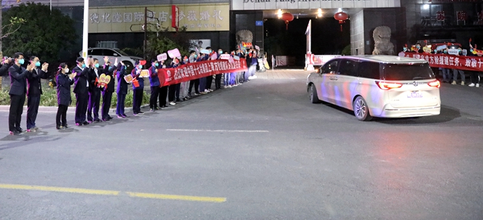 寒夜冒雨踏征程,满载星光凯歌还。4月20日晚,首批返程人员乘车返马,顺利抵达健康驿站。4月21日夜间、4月22日凌晨,公司领导和部分员工早早地守候在道路两旁,翘首以盼,迎接陆续归来的援建英雄。“圆满完成方舱援建任务,致敬十七冶守沪英雄!”“驰援上海方舱,英雄不辱使命,满载荣誉归来!”等一条条鲜艳的横幅持在手中,寄予着公司上下对全体援建勇士的崇高敬意和深切牵挂。