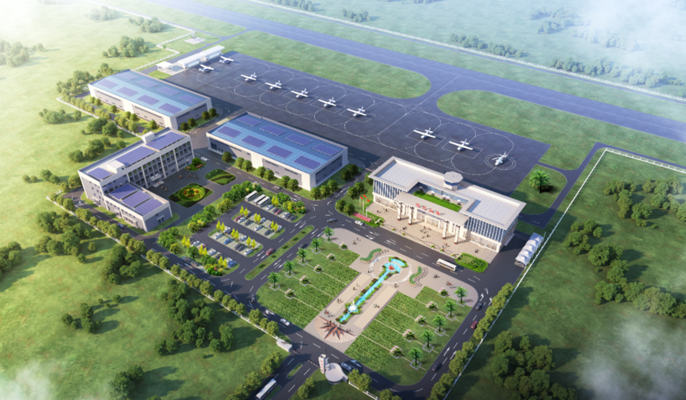 明光通用机场项目位于明光市苏巷镇丁庄,建设内容包括新建一条长1200米、宽30米跑道,1条垂直联络道、8个站坪机位、6300平方米航站综合楼(含塔台)、4135 平方米机库、1400 平方米后勤保障中心以及消防救援、供电、给排水、供冷、供热、供油等配套附属设施。