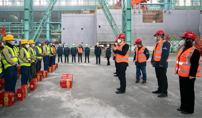 喻世功董事长一行深入马钢新特钢项目现场,了解春节期间项目安全预案制定、值班人员安排以及员工生活保障等情况,在听取项目负责人关于春节期间工作安排的汇报后,高度赞扬了团队攻坚克难、无私奉献的精神,勉励大家以更饱满的精神状态、更强烈的使命担当,在新年取得更好成绩、更大光荣。喻世功董事长表示,马钢的建设凝聚了几代十七冶人的心血,马钢新特钢项目建设至今受到业主高度评价,得益于大家的拼搏与奋斗,希望全体十七冶冶金人在新的一年里踔厉奋发、勇毅前行,擦亮十七冶“冶金建设国家队”的金字招牌,全力以赴推动高质量发展。