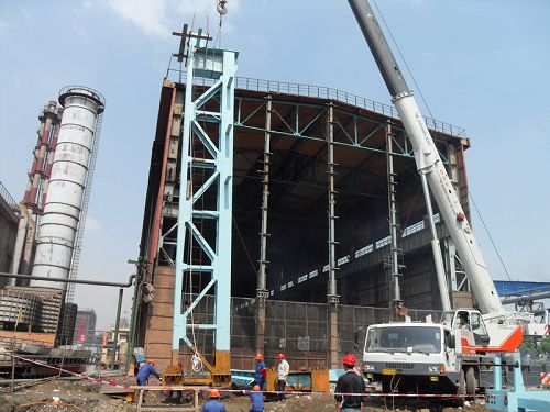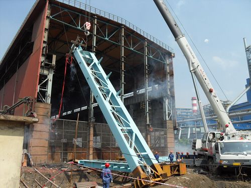 梅钢炼钢渣处理落锤区搬迁改造工程,在南京市中华门外新建梅山钢铁股份有限公司内。在该工程中,机电公司主要承担的是在炼钢渣跨厂房向东延长24m,新增一台75/32t铸造桥式起重机、更换现有两台6KV/0.4V1250KVA油浸变压器、进线柜记母连柜、原有刚性滑触线及相应配电箱和进线电缆、原有回路的开关、新增柜体、低压封闭式母线槽,新增低压柜主母线、动力检修箱电源,东延部分照明、防雷接地、管线敷设以及相关公辅设施,加上原有部分原厂房及部分公辅拆除等一系列、行车、电气、管道安装任务。该工程工作量约840万元,合同工期112天。按照工期安排,6月30日主厂房钢结构安装将全部结束。