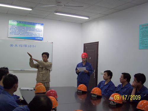 为了贯彻工程技术服务公司《关于加强检修施工现场安全隐患排查的通知》的文件精神,针对湖北新冶钢460钢管厂天车实际情况,该检修项目部聘请湖北新冶钢专职安全工程师讲解、现场演示指挥规范,并将培训教材以图解的形式编印成册,下发到各作业区。为了巩固效果、扩大教育面,该项目部还利用早会时间组织员工进行集体演练。通过培训,该检修项目部形成“人人懂天车手势,起重工规范指挥天车”的良好局面,深受业主的好评。
