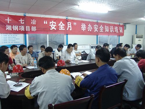 66日,湘钢项目部以开展“安全生产月”活动为契机,举办了一期由项目部领导、两级项目部管理人员,专职安全员和外协队伍负责人40余人参加的安全知识培训。