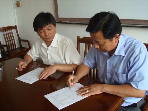 公司工会主席陈夕潮代表公司劳动竞赛委员会分别与厂、项目部等八家单位签订了劳动竞赛合同。