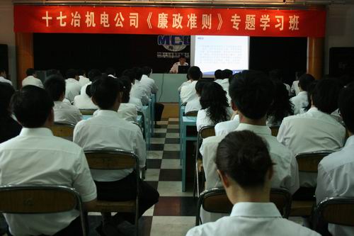 527下午,机电公司举办《廉政准则》专题学习班,公司机关全体管理人员、各项目部经理以及各工程处全体管理人员共100多人参加了学习班。