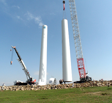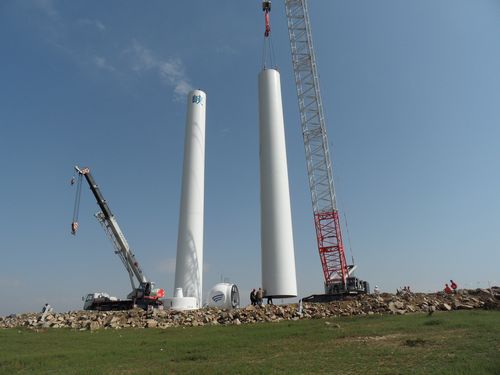 十七冶集团内蒙古化德三道沟风电项目风机吊装工程自811日开工以来,截止817日,下了四场大雨,刮了两天大风,严重影响了工程进度。不畏任何困难的十七冶风电人不向困难低头,发扬艰苦奋斗精神,与恶劣天气进行顽强的抗争,与老天打起了“游击战”,风小了我干,雨大了我退,哪怕只有一两个小时也要争分夺秒地抢任务。就这样,在确保安全的前提下,硬是成功抢吊了两台风机,彰显了风电人的过硬作风,从而感动了业主。