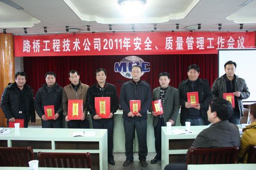 会上,公司总工程师谢兰敏首先作了2011年安全、质量管理工作报告;项目监管部通报了2010年四季度项目考核情况;公司2010年度安全、质量管理先进单位铜芜路拓宽改造工程项目部和南京滨江大道项目部分别在会上做了经验介绍与交流。