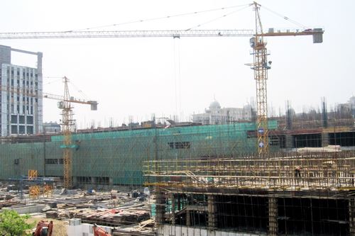 5月5日上午,蚌埠金融中心项目部召开工程施工推进会,公司项目监管部部长范文刚在会上对确保稳步推进工程提出了阶段性目标和要求,并代表项目监管部与蚌埠金融中心项目部及施工单位签订了目标考核责任书。 金融中心工程1-6层系连体结构,单层砼4600m3,楼层间距高、跨度大,施工难度比较大。为在10月底实现整体结构封顶目标,范文刚部长进一步明确了对项目部管理人员和施工单位的奖惩措施,并要求在6月5日前安全、优质完成六层以下结构。