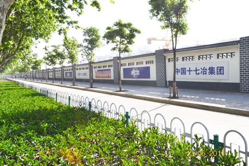 项目部还将十七冶企业文化视觉系统与芜湖市文明城市创建相结合,对200多米工地围墙进行了美化,建成了沿街一条靓丽的风景线。