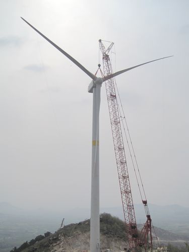 自吊装工程开工以来,项目部克服了现场山路坡陡崎岖、设备运输困难等诸多不利因素,精心筹划,合理安排,在业主、监理及上海电气厂家的密切配合下,顺利完成首台风机吊装。