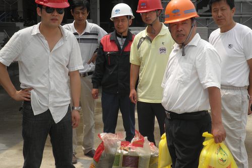 7月28日上午,马鞍山市花山区工会主席姚成颖、马鞍山市花山商贸旅游园工会主席等领导亲临市政工程技术公司软件园项目经理部慰问现场施工人员,并为现场工人送来绿豆、白糖等防暑降温物品,为炎炎夏日奋斗在施工一线的工人送清凉。 花山区工会的关心,让项目员工感受到了丝丝凉意。发放完物品,姚成颖主席又关切的询问大家的身体情况、工作状况,叮嘱大家要注意防暑,关爱生命,确保健康。