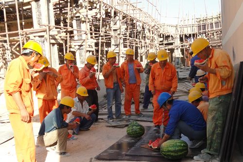当国内日渐凉爽的时候,阿尔及利亚却面临持续高温酷热天气。为确保安全生产和保障员工的身体健康,我公司阿尔及利亚Bousaada监狱工程项目部以人为本,情系员工,开展了送清凉慰问活动。 8月21日下午,阿尔及利亚项目部党工委、工会再赴施工现场,将西瓜和纯净水等防暑降温饮品送到奋战在一线的员工手中,叮嘱大家合理安排作息时间,注意安全,以实际行动关心爱护员工。并号召大家再接再厉,确保监狱工程在9·15顺利完工,在海外打造MCC品牌。
