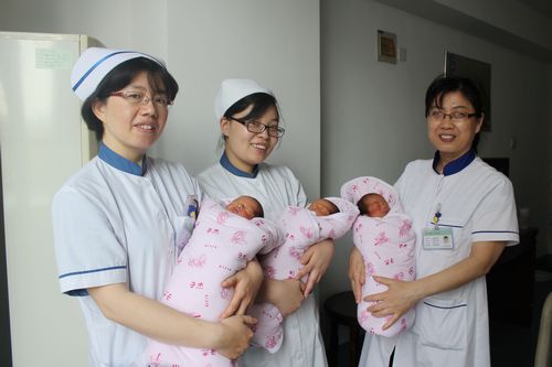 5月21日,产妇王凤娟在十七冶医院产科、新生儿科医护人员的帮助下,顺利分娩了三个男婴。在产妇和孩子住院期间,医护人员十分关注三个孩子的健康,每天细心观察孩子们的哭泣声和每一个细小的变化,按时给孩子们进行脐部护理,定时沐浴。医护人员的亲切关怀,细心的服务,使三胞胎的父母非常感动。在出院时,医护人员都依依不舍,纷纷抱着三个可爱的小宝宝拍照留念。