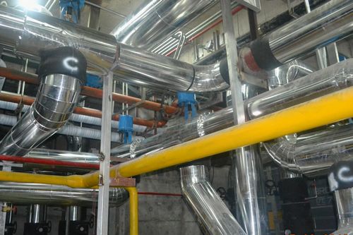 海螺大厦中央空调系统主机采用直燃式溴化锂冷温水机组,共有两台主机担负全楼64000平方米面积的空调功能。在空调系统立管及楼层支管施工完成并试压合格后,工程进入了最重要也是难度最大的制冷主机房的设备及管道施工。由于制冷机房面积小、高度较低、各专业管线密集,给施工带来的较大难度。施工前,项目部多次组织相关专业负责人进行研讨、现场实际测量,取得了详细的施工参数,绘制了大量的管道综合布线图,优化施工。经过工程技术人员和安装人员一年多的共同的努力,设备和管线的安装、试压及调试按时完成,工程质量、外观都得到了业主及监理方的认可。
