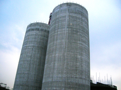 该工程共有6座体型相同的水泥库,均为直经18.38m、高45m的筒体,库体9m以下为双层库壁,库壁厚度分别为380cm和350cm。项目部在总结以往施工经验的基础上,合理安排施工工序,对水泥库双层库壁同时进行双滑施工,减少施工流程和重复用工,保证了库体的整体性能。经过10天10夜的连续奋战,项目部顺利完成了2个水泥库体滑模任务。经业主和监理单位检查验收,库体垂直度、混凝土密实度及观感均得到高度认可。