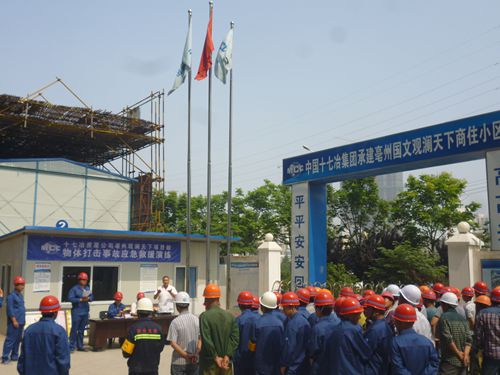 当天上午,亳州观澜天下项目部还开展了“物体打击事故应急预案演练”活动。此次应急预案演练时长30余分钟,参练人员按照既定的实施方案有条不紊地完成了事故初发、事故报告、事故处理和现场应急救援等多组成员的联动预演,并聘请了当地人民医院主治医师进行现场急救示范讲解,提高了救援组的应急救援能力,增强了务工人员的自我保护意识。经过此次演练,项目部在总结的基础上,计划将现场可能出现的其他伤害事故在后期继续进行有组织的应急演练,全面增强现场应急救援的能力。