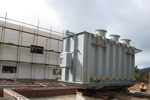 该风场升压站位于广西省玉林市容县六笛林场。电气安装工程包括两台主变压器、110KV配电装置、35KV配电装置、站用电系统等安装及调试。目前,第一个主变压器已经安装就位,随着其他设备陆续进场,工程将进入电气设备安装施工高峰期。项目部将继续发扬高效严谨、精细务实的企业作风,将设备安装节点具体到天,在保证安全、质量的前提下,确保按时完成安装任务。