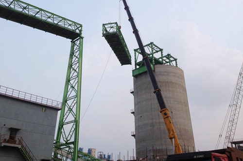 K112通廊共计8榀通廊,8榀支架,自K-5转运站通向仓顶转运站+39.97m钢平台,水平跨度165m,其中第8榀通廊长度28.3m,起吊高度43.5m,单重约27t。为确保通廊青奥会前顺利贯通,冶金公司组织全体参战人员于89完成了K112通廊4-6榀通廊以及支架A16-1安装,11日完成K115通廊安装,为电气电缆敷设提供有利条件。冶金公司全体人员一刻也不懈怠,以实际行动践行着“高效严谨、精细务实”的企业作风,克服连续阴雨、场地狭小等诸多不利因素,统筹安排,精细化管理,在青奥会前顺利贯通了K112通廊。