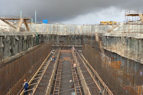 湛江钢铁炼钢项目2#铁水倒罐坑底板砼开始浇筑