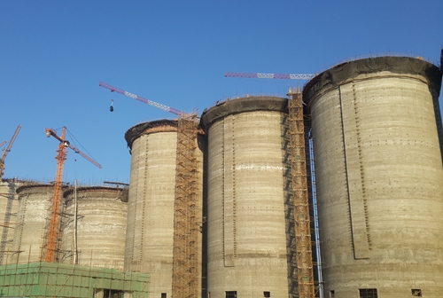 该项目无粘结预应力储配仓工程,共有9个储配仓,冶金工程技术公司承建4#、5#、6#无粘结预应力储配仓土建工程,该储配仓施工内容中包含了住建部2010 年版建筑业10 项新技术应用技术的大直径钢筋直螺纹连接技术、无粘结预应力技术、现浇混凝土外墙外保温施工技术。滑模施工期间,项目部对钢筋工程、预应力钢绞线的铺设、混凝土的供应与浇筑质量、埋件的安装与清理、平台上的安全和文明施工情况进行全程管控,最终顺利完成了滑模施工阶段的主体结构施工任务,赢得了业主及监理的一致好评。