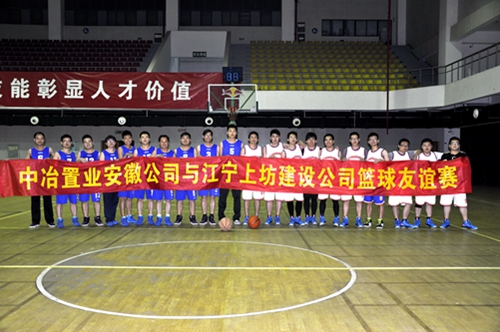 1125,中冶置业(安徽)公司上坊经济适用房项目部与南京江宁上坊建设有限公司在南京交通学院体育馆举行了一场热烈友好的篮球友谊赛。