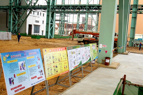 为良好的展现十七冶优秀的企业文化,不断提高现场作业人员安全意识,现场随处可见安全宣传标语、安全宣传栏、危险源告知牌等宣传材料。
