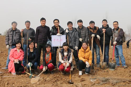 一棵棵树苗在大家的辛勤培植下,挺立在温暖的春阳,原本比较荒凉的土地顿时显出了生机。植树结束后,大家在地头的标牌上郑重写下“十七冶”三个字,并合照留影。