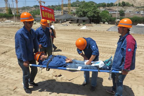 演练于1400正式开始,在项目路基施工现场,模拟突发汛情场景,防汛巡查员在进行巡查过程中发现水位已超出警戒线,并有一名员工受伤。巡查员迅速报告突发情况,总指挥立即启动抗洪抢险应急救援预案,成立抢险组、安保组、医疗救护组、应急疏导组等专业处置小组,开展防洪应急抢险救援。险情就是命令,抢险组立即调运机械进行疏导水流,加固堤坝;医疗救护组快速带上担架、急救箱等立即赶往现场进行急救;其他各小组各司其职,迅速反应,做好抗洪抢险各项工作,一场上下联动、紧张有序的抗洪抢险应急演练顺利展开。演练结束后,总指挥对演练过程进行了认真点评,业主、监理、质监站等相关单位领导指出了不足,提出了建议。
