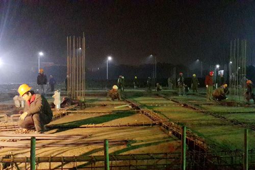 东誉城招商中心项目建设之初便坚持项目策划高起点、项目管理高标准,抓好前期项目策划和方案编制工作,确立创奖创优目标;采取“白加黑”施工,安排人员晚上轮流值夜班,抓好现场质量、安全、材料管控;克服雨雪天困难,办公大临快速建设,桩基提前进场;与各参建单位签订劳动竞赛合同,加大奖励资金投入,调动积极性;主动出击,积极同参建单位及业主单位沟通,将事情安排在前、问题解决在前;召开工程推进会,排除问题,化解难题,将思想统一到效率上来,推动项目建设快速稳步前进。目前,该工程已完成承台、基础梁、一层底板混凝土施工,正积极进行模板加工,进行一层顶模板安装、架体搭设。