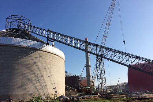 此次斜拉链吊装高度高,难度系数大,加之缅甸无大型吊车的限制,更增加了吊装的难度。面对困难,项目部领导精心组织、周密安排,从其他安装单位协调吊车,吊装过程中时刻注意安全,最终顺利完成了吊装,为缅甸皎施海螺如期点火奠定了基础。