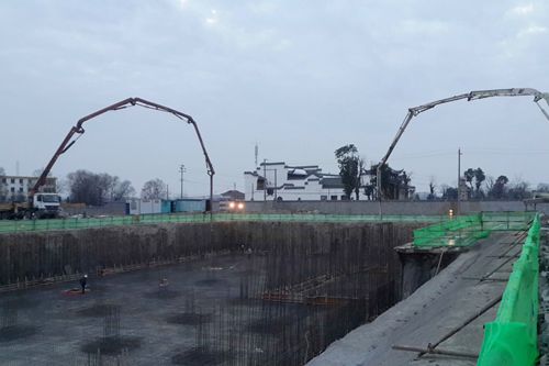 采石古镇一期项目完成首次地下室底板混凝土浇筑