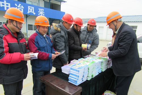 当天,中冶置业(安徽)公司党委书记徐良蓉一行还为项目施工管理人员和一线工人发放《安全知识口袋书丛书》。该套丛书详细配以漫画和文字,生动讲解了安全管理、安全检查、隐患排查与治理、紧急救护、安全常识、员工安全知识、安全法规、安全题库、应急避险逃生知识、事故案例等系列安全知识,有助于管理人员和建筑工人加强安全知识学习,提高自己的安全防范意识,确保施工生产安全。本次活动共发放出1000册口袋书,受到了广大管理人员和建筑工人的好评和赞扬。