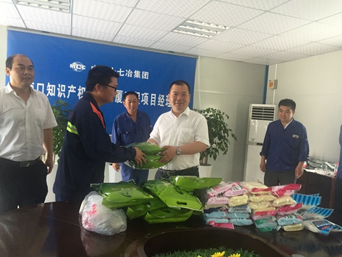 随着高温天气逐渐增多,6月30日,中国十七冶集团工业建筑工程技术分公司配备了防暑降温药品和清凉饮品,由公司纪委书记、工会主席施光涛带队送往南京浦口知识产权服务大厦项目、苏州望亭电厂至相城区集中供热工程等项目。