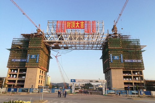 11月28日,由中国十七冶集团承建的东兴口岸二桥综合服务区一期工程联检大楼钢结构框架顺利封顶。