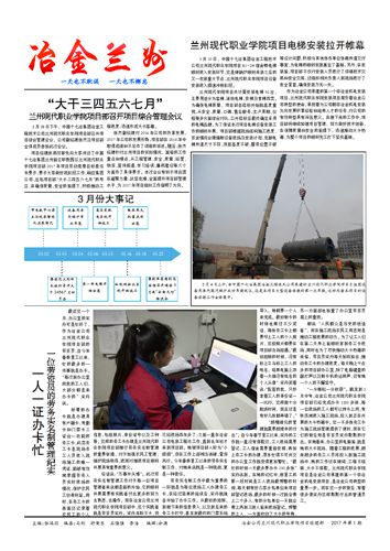 3月22日,由中国十七冶集团冶金工程技术公司兰州现代职业学院项目部自主创作的项目内部宣传期刊《冶金兰州》第一期正式创作并印制成功,自即日起,将对项目部各部门及各协作单位进行发放。