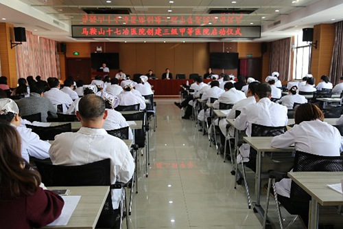 4月12日下午,十七冶医院召开三级甲等综合医院动员大会,正式启动“三甲”医院创建工作。医院领导王仲恺、尚昌凤、高荣东、苏仕功、王骥、全院副科级以上管理人员、各科室负责人、全体护士长参加会议。