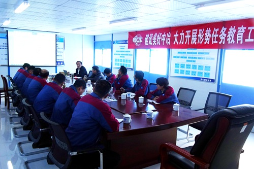 2月25日,中国十七冶集团路桥工程技术公司党委在兰州市北滨河路西延线7-B项目组织开展“建设美好中冶,大力开展形势任务教育工作”专题形势任务教育学习。兰州市北绕城东段高速公路盐场堡至什川连接线、生态文化创新城中线连接线、雁滩T605#路东段新建工程、西行线及西出口改建工程二标段等五个兰州片区项目经理部的项目经理、支部书记及纪检组长等参加学习。