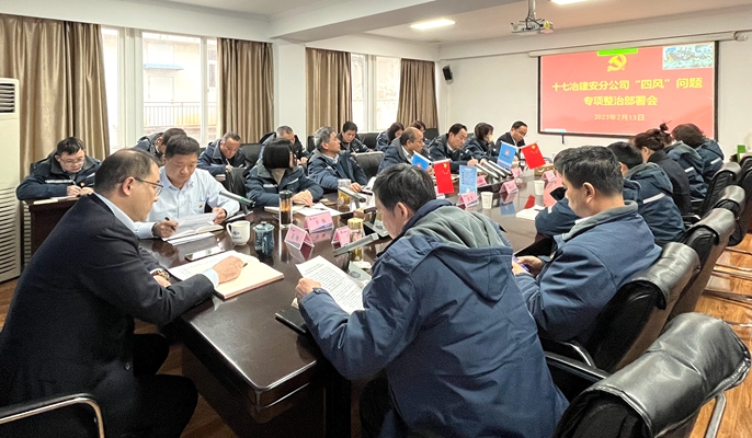 2月13日下午,中国十七冶建安分公司召开“四风”问题专项整治动员部署会,分公司领导班子、经理助理、副三总师,实体单位和机关部门负责人现场参会,项目经理部领导班子、党支部书记视频参会。