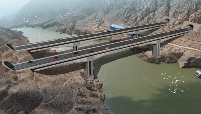 本项目位于甘肃省皋兰县及榆中县交界处,由南向北建设大河坪隧道、什川黄河特大桥、上河坪隧道等。什川黄河特大桥作为项目控制性工程,是全线亮点工程之一,其主跨160米横跨黄河,桥型布置为(90+160+90)米预应力混凝土波形钢腹板连续刚构,左幅桥长350米,右幅桥长349米。桥梁主梁采用单箱单室变截面波形钢腹板预应力混凝土连续箱梁,主墩采用双肢实体墩,下部基础采用承台接群桩基础。全桥桩基共计44根,其中主墩桩基36根,桥台桩基8根。四个主墩桩基均为长15米、直径2.0米的灌注桩,纵横桥向分三排对称布置。截至目前,已累计完成全部主墩桩基36根,大体积混凝土承台2个,双肢实心墩柱正在逐段施工中。