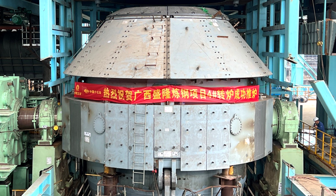 3月17日下午,中国十七冶冶金分公司承建的广西盛隆炼钢项目4#转炉成功推炉。标志着本工程最后一台转炉完成推炉,项目进入关键收尾阶段。