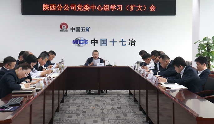 5月10日,中国十七冶陕西分公司召开党委中心组(扩大)理论学习会,分公司领导班子成员、经理助理、副三总师、机关各部门负责人参加学习。